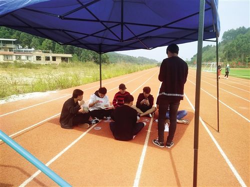 食堂里人太多,部分學生干脆打包飯菜到球場吃