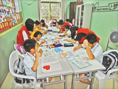 “快樂四點半”課堂主要由當地政府出資,通過政府購買服務,組織社工、志愿者、大學生、退休教師、老黨員等輔導孩子做功課,并穿插一些美術、書法等活動,社區居委會給孩子提供一個學習娛樂場所,承接服務的社會組織負責開展各種趣味活動。