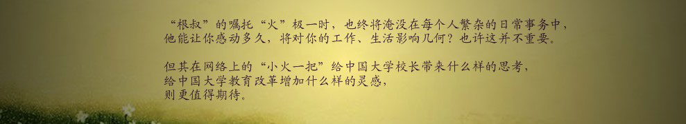在華中科技大學2010屆本科生畢業(yè)典禮上,校長李培根院士16分鐘的演講,被掌聲打斷30次。在2000余字的演講稿中,李培根把4年來的國家大事、學校大事、身邊人物、網(wǎng)絡熱詞等融合在一起,打動了畢業(yè)學子們的心。在發(fā)言中,全場7700余名學子起立親切的高喊:“根叔!根叔!”