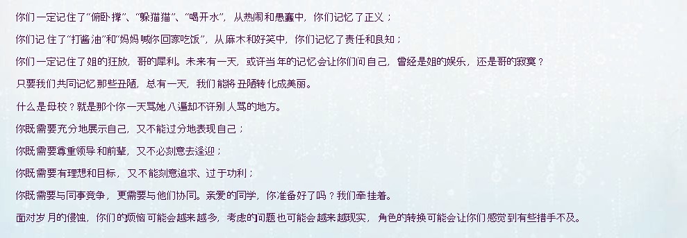 記者:我知道您最近在華中科技大的這個畢業(yè)演講引起了很大的轟動。這個演講當中有很多打動80后、90后的東西,比如說“你們一定記住了姐的狂放,哥的犀利。未來有一天,或許當年的記憶會讓你們問自己,曾經(jīng)是姐的娛樂,還是哥的寂寞?”那這些話都是非常有網(wǎng)絡語言的特點.我想問一下,這個演講真的是您寫的嗎?還是您80后的秘書給寫的?