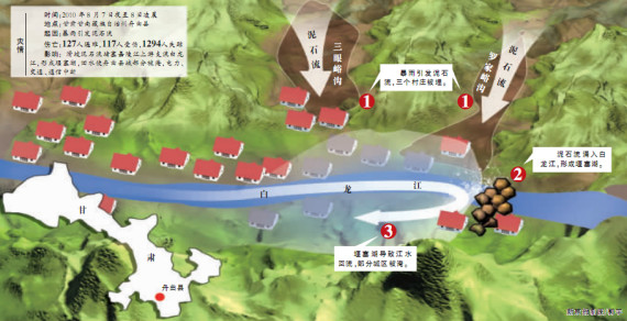 據甘肅省廣播電影電視總臺網站介紹,舟曲縣位于甘肅省東南部的白龍江中上游,東、北與隴南地區的武都、宕昌縣為鄰,南與隴南地區的文縣、四川省南坪縣接壤,西與本州迭部縣毗連。東徑103度51分至104度45分,北緯33度13分至34度01分,西秦嶺、岷山山脈呈東南至西北走向貫穿全境,地勢西北高、東南低。