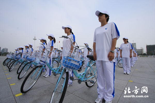 天津北方網訊:3日下午,2010天津夏季達沃斯論壇城市志愿者騎行隊成立暨“綠色騎行、快樂低碳”宣傳活動啟動儀式在梅江會展中心前廣場舉行。200位志愿者騎行隊員將深入本市主要街道和居民社區,向市民和游客廣泛宣傳天津夏季達沃斯論壇和低碳環保理念。