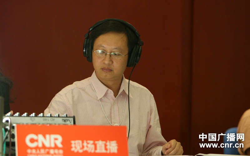 總編室副主任胡國華監聽直播情況。(中廣網記者 陳曉冉 攝)