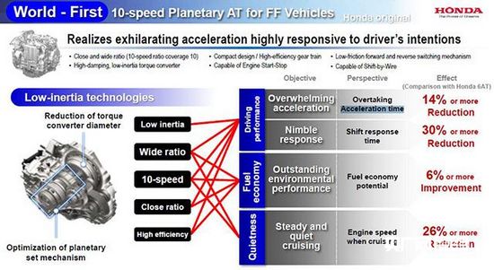 近日,據(jù)海外媒體消息,本田在2015本田科技日上首次發(fā)表了為前驅(qū)開發(fā)的10速自動變速箱。該款全新的變速箱具有更加省油、快速以及低油耗的特點,換擋反應(yīng)提升了30%。