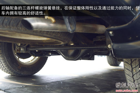 與目前銷售的漢蘭達等傾向城市實用的7座SUV不同,帕杰羅勁暢始終保持了能夠應付較高越野強度的設計。國產版本仍然使用了非承載式車身,前雙橫臂配后三連桿螺旋彈簧的懸掛組合,車身強度足以應付多數越野路況。