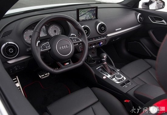 內飾方面,奧迪S3承襲了奧迪家族豪華時尚的設計理念,采用包裹性強的賽車座椅,真皮座椅采用漂亮的白色手工縫線。擋把、扶手箱、門把手等位置也均采用真皮包裹,多功能方向盤也沒有采用正圓的造型,更顯動感時尚。
