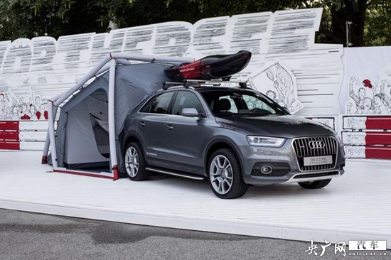 奧迪Q3 Camping Tent車(chē)型被設(shè)計(jì)成為一款終極戶(hù)外運(yùn)動(dòng)車(chē)型,新車(chē)配備了奧迪原廠配件,包括鋁合金輪轂、可以放置皮艇的車(chē)頂行李架等等。