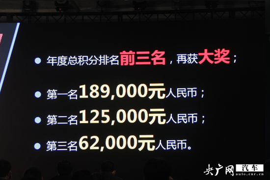 比亞迪汽車銷售有限公司副總經理高子開先生還對2015年繼續征戰CRC賽事進行了展望。據了解,不僅現有車隊將正常運營并繼續參賽,比亞迪還將啟動“2015年比亞迪秦 百萬獎金車手招募計劃”。2015年,比亞迪將向社會公開招募征戰CRC賽事SAE組的車隊及車手,并有償提供必要的技術及配件支持,由包括賽事官員、汽車媒體、職業車手等專業人士組成的評審團對對應招團體及個人的資質進行評審。所設立的“百萬獎金”將以比賽積分的形式進行拆分,在2015年CRC各站比賽中駕駛比亞迪秦出戰的排名前八的車手可獲得相應積分,每個積分可獲得2000元獎勵。年度積分總排名前三名的車手還將獲得額外積分。