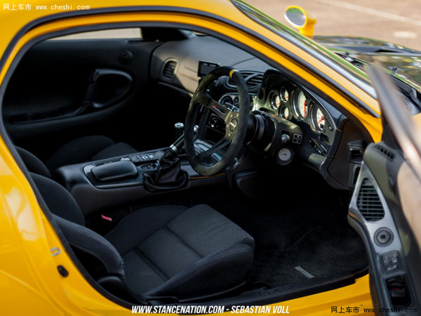 兇悍的外形,艷麗的黑黃配色,彰顯了這輛車的不凡之處,也體現出車主對這輛車的熱愛,犀利寬大的運動套件上身之后,讓這款RX-7看起來更加的運動范兒十足。