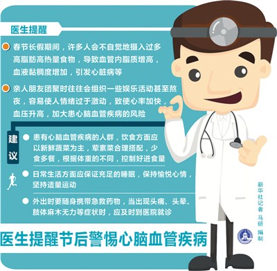 春節期間,在家宅著和外出聚會成為假期生活的主要內容。作息不規律和娛樂過度容易導致睡眠不足、眼睛干澀不適、“麻將腿”、肩頸腰痛等疾病。外出游玩則有可能因公共場所的密切接觸而引起傳染病。節日期間飲食不節制、生活失去規律甚至容易導致胰腺炎、胃腸炎、心腦血管等疾病。