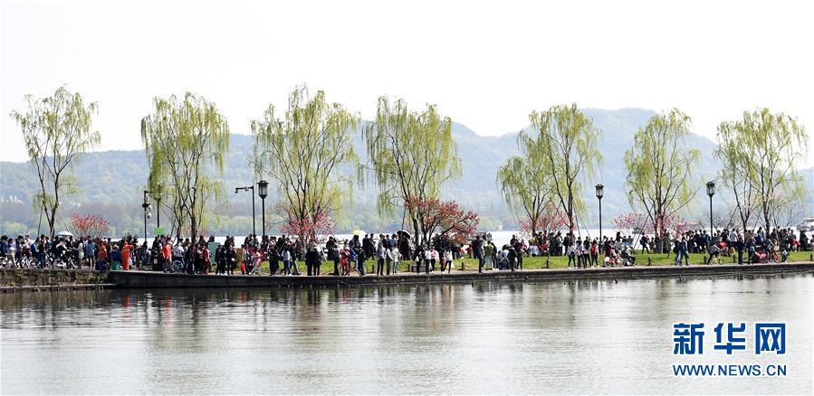 當日是清明小長假第一天,浙江杭州天氣晴好,西湖堤岸桃紅柳綠,吸引眾多游客。
