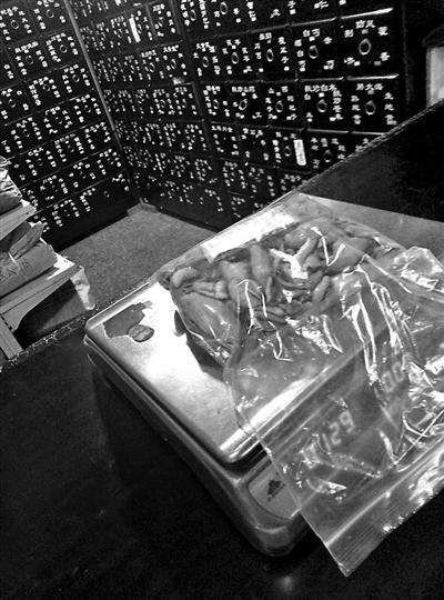 隨后,北青報(bào)記者來到望京附近的一家藥店,店員向北青報(bào)記者推薦了一服中藥,其中含有10克穿山甲片,并稱也可以單獨(dú)購買穿山甲片,但是要10克起賣,137.5元10克。店員從藥柜中取出一個(gè)透明的自封袋,里面裝有三分之一的穿山甲片,北青報(bào)記者問這袋有多重時(shí),店員隨即將這袋穿山甲片放在電子秤上,電子秤顯示共129克,“我們進(jìn)貨都是1公斤的,賣到現(xiàn)在只剩這么多了”。