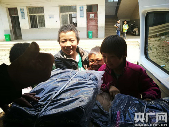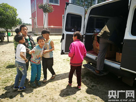 阜南縣國稅局局長陳東康和愛心企業(yè)給孩子們發(fā)送文具