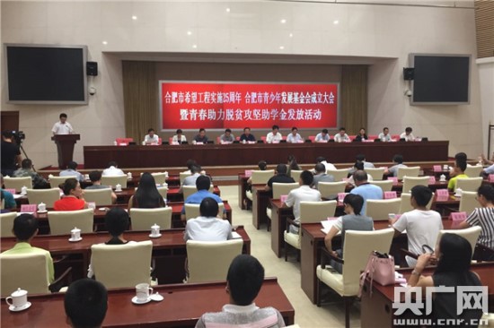 央廣網合肥8月25日消息(記者徐鵬)8月25日上午,合肥市希望工程實施25周年暨合肥市青少年發展基金會成立大會在合肥召開。央廣網記者在會上了解到,截至2016年底,合肥市(含縣市區)累計接受社會各界捐贈款物超過7300萬元,資助貧困大中小學生超過8萬人次,援建希望小學73所。