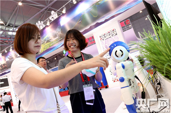 工作人員向觀眾介紹智能機(jī)器人