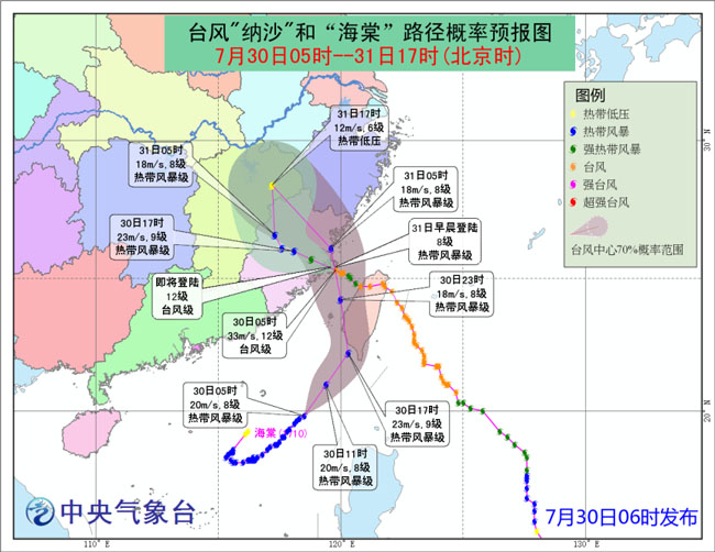 今天上午10時,第9號臺風(fēng)“納沙”(熱帶風(fēng)暴)的中心抵達福建省永泰縣境內(nèi),即北緯25.9度、東經(jīng)118.8度,中心附近最大風(fēng)力有9級(23米/秒),中心最低氣壓為986百帕。