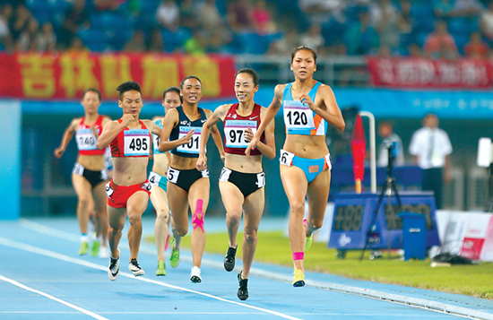 9月6日晚,第十三屆全運會田徑女子800米決賽在天津奧林匹克中心體育場舉行,我省運動員王春雨(120號)以2分3秒49的成績獲得冠軍。