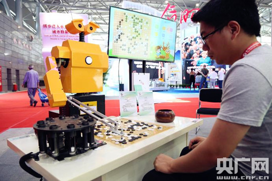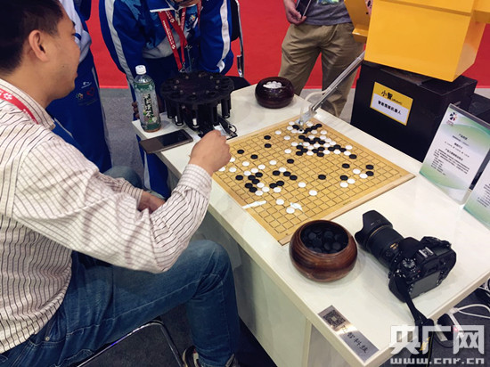 央廣網安徽頻道5月17日消息(記者 張宣劍)5月17日上午,第十屆中博會主展館開門迎客,在主展館內湖南館的圍棋機器人“小智”吸引了眾多的愛好圍棋的中老年朋友,很多圍棋愛好者躍躍欲試,想與“小智”一決高下。