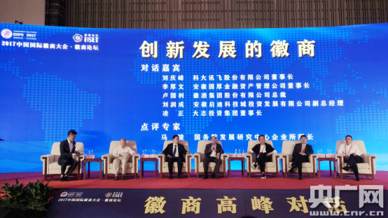 在上午舉辦的“2017中國國際徽商大會·徽商高峰論壇”對話環節,對話嘉賓圍繞“創新發展的徽商”、“開放發展的徽商”、“綠色發展的徽商”三個主題進行了精彩的對話,來自境內外的客商共300余人參加了此次活動。