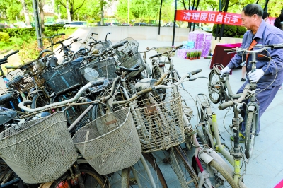 “吉慶里的冬青叢邊就停著幾輛自行車(chē),不知道多少年沒(méi)人碰過(guò)了!背饨值老嚓P(guān)負(fù)責(zé)人說(shuō),在老舊小區(qū),不論是墻根下,還是車(chē)棚里,都能找到“僵尸自行車(chē)”的身影。它們有的落滿(mǎn)塵埃、銹跡斑斑,有的輪胎發(fā)癟開(kāi)裂,甚至“缺胳膊少腿”,擠占了大量公共空間。為了清僵尸車(chē)給共享單車(chē)騰地兒,一個(gè)月前,吉慶里社區(qū)在每輛自行車(chē)的把手上系了一根紅繩,如果紅繩被摘除,就說(shuō)明車(chē)子有主人,反之,則由社區(qū)、街道統(tǒng)一回收、清走。此外,居民自家的閑置自行車(chē)也能送到社區(qū),兌換盆栽、綠植。