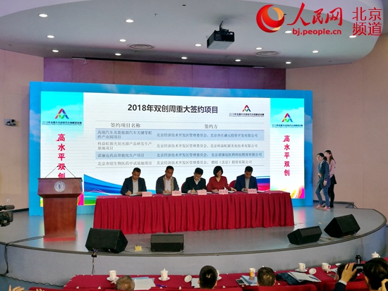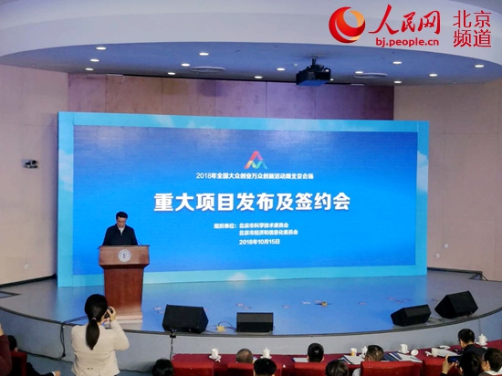10月15日,2018年全國雙創周北京會場舉行“重大項目發布及簽約”。人民網孟竹 攝