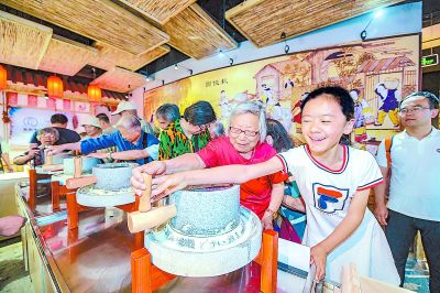 昨天,市民走進(jìn)北京市腐乳科普館,了解老字號(hào)“王致和”,體驗(yàn)腐乳制作傳統(tǒng)工藝。本報(bào)記者 潘之望攝