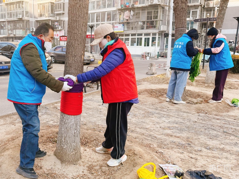 央廣網北京12月11日消息(記者 王進文)近日,北京市朝陽區小紅門鄉熙悅安郡社區、鴻博家園第六社區組織物業、居民為轄區內樹木“穿上”玫紅、明黃、湖藍等顏色的“毛衣”,在引導轄區居民參與社區治理的同時,用亮眼的“多巴胺色彩”渲染冬季社區環境。