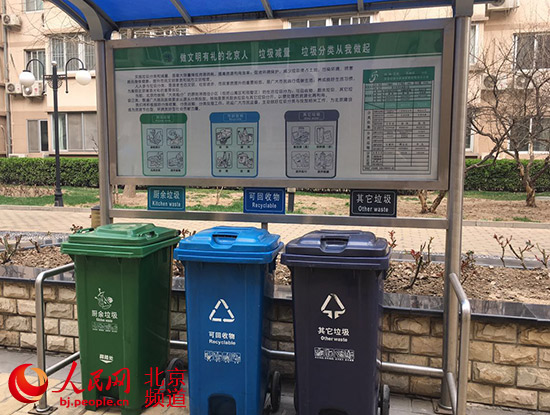 北京市西城區金融街街道豐融園小區垃圾分類亭。人民網 鮑聰穎攝
