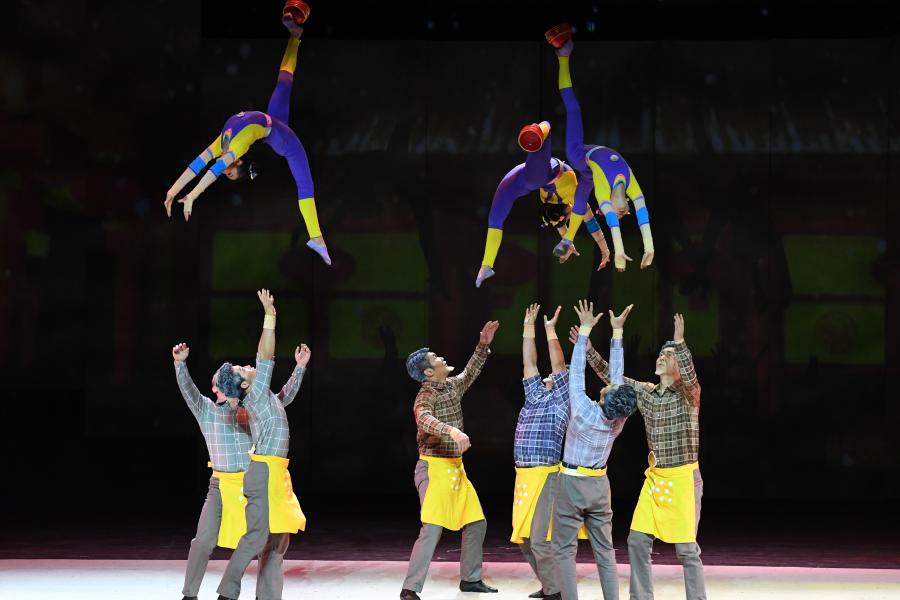 北京:感受雜技藝術魅力,12月15日,演員在《我和我的青春—青春ing》雜技主題晚會中表演雜技《我家有女初長成——頂碗》。當日,《我和我的青春—青春ing》雜技主題晚會在北京保利劇院舉行,本次演出采用現代化技術手段與雜技相結合的方式,通過八個節(jié)目為觀眾展現雜技藝術的魅力。