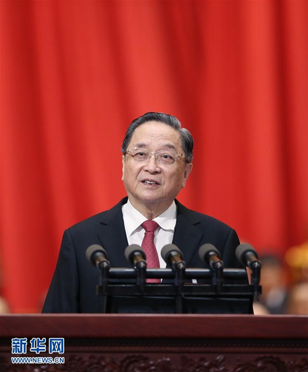 俞正聲代表政協第十二屆全國委員會常務委員會作工作報告。新華社記者 姚大偉 攝