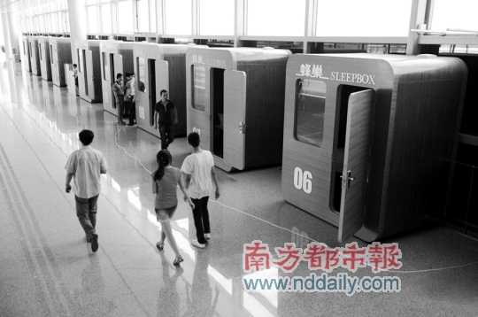 目前,這種睡眠倉(cāng)有兩人位和三人位,在不到三平米的有限空間內(nèi),配備有一次性床罩和被單床,可折疊的桌子,床頭柜,一人高的鏡子,以及裝有百葉窗的窗戶。據(jù)了解,睡眠倉(cāng)內(nèi)今后還將安裝電視、空調(diào)和無(wú)線網(wǎng)絡(luò)。
