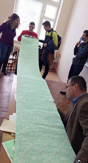 考試是學習的必經階段,有人會發奮學習,力求脫穎而出,但也有人希望通過小聰明,以其他方法過關。俄羅斯一群大學生在考試中為求過關,竟然想利用一張長3.6米的墻紙作弊。