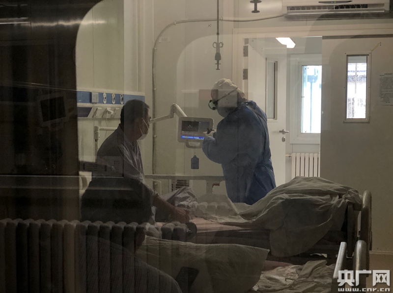 6月16日,北京地壇醫院第五病區,醫護人員幫患者調試床邊屏幕的電視信號(中央廣播電視總臺央廣記者 白杰戈 攝)