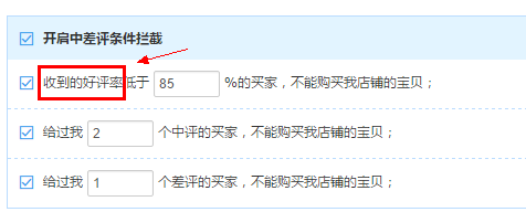 劉小姐介紹,這種好評率攔截并非淘寶賣家平臺的自帶功能,而是通過需要通過安裝第三方插件來實現。它可以設置對好評率低于多少的買家進行攔截。