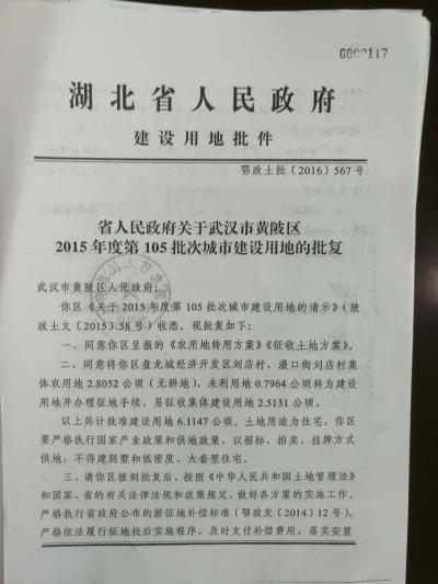 記者調(diào)查發(fā)現(xiàn),雖然案涉地塊2016才被湖北省政府批復,由農(nóng)用地變更土地性質(zhì)為建設用地,但早在2002年,當?shù)卣蛯⑦@塊土地交由武漢六建開發(fā),并讓武漢六建完成了“三通一平”(指基本建設項目開工的前提條件)和繳納了征地補償費用。盤龍城經(jīng)開區(qū)管委會副主任胡莉萍解釋稱,當時他們在履行這個協(xié)議,里面涉及到征地這一塊的工作,要與農(nóng)民對接,他們協(xié)助他做相關的工作。按照國家的相關政策,土地是要進行補償?shù)摹?/p>