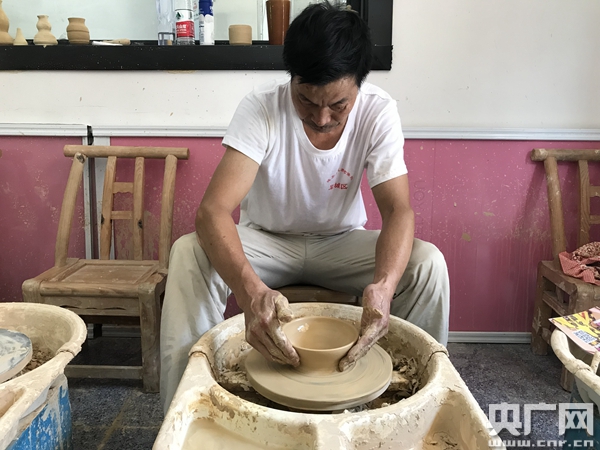 在銅官街道的一家陶藝店里,56歲的黃師傅在展示陶藝的拉胚技術。湖南省博物館瓷器研究專家方昭遠介紹說,長沙銅官窯以首創釉下多彩瓷和銅紅釉瓷而聞名于世,同時將中國傳統文化中的書法、繪畫、雕塑等元素融入其中,開創了中國瓷器裝飾藝術上的先河。在唐代中前期,長沙窯沒有出現的時候,大家都認可“南青北白”。但是長沙窯出現之后,“南青北白”的格局就被打破了。民間研究者有一個概念,叫“南青北白長沙彩”,就是當時三種主流的裝飾工藝。