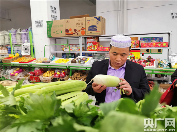 馬乙拉四在市場挑選蔬菜(央廣記者 葛修遠 攝)