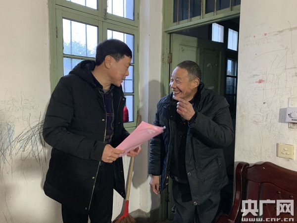 胡繼慰問村里的貧困戶(洪昊 攝)