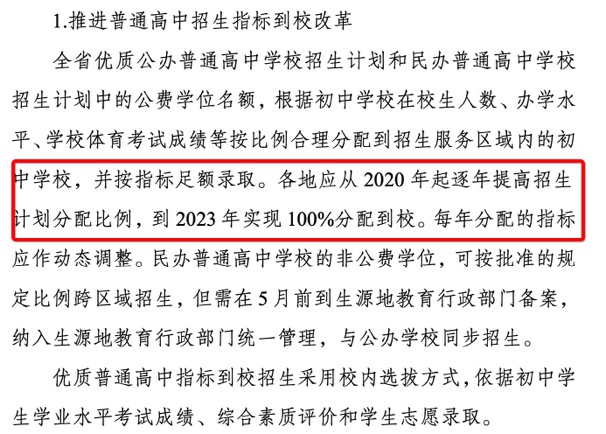 根據昆明市教育體育局發布的2021年中考六問六答,此次改革的核心是指標到校。從2021年起,增設優質普通高中劃出一定比例的招生名額分配到招生區域內所有初中學校的招生方式,簡稱為“配額生招生”,今年的“配額生”指標為40%。