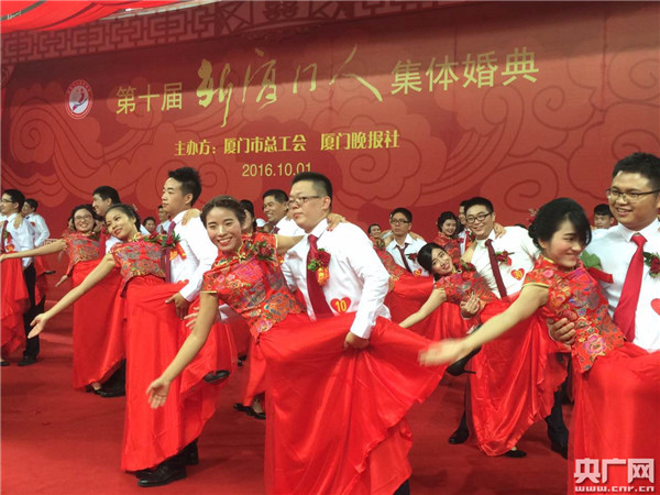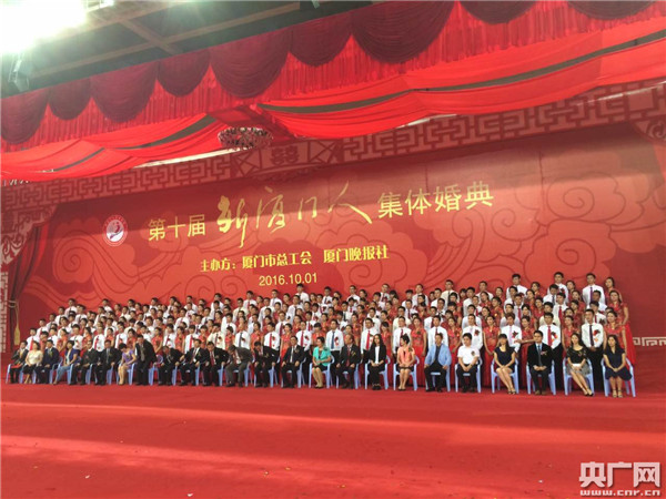 央廣網(wǎng)廈門(mén)10月1日消息(記者陳庚)據(jù)中國(guó)之聲《央廣新聞》報(bào)道,今天上午,第十屆“新廈門(mén)人”集體婚禮在廈門(mén)市工人體育館舉行,廈門(mén)市相關(guān)領(lǐng)導(dǎo)為百對(duì)新人證婚。