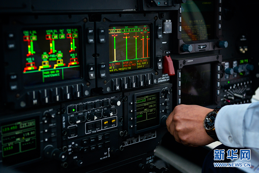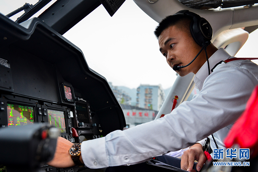 11月12日,航空應急醫療救援在重慶市璧山區舉行,圖為執飛機長進行飛行前的確認檢查。新華網 李相博 攝 -