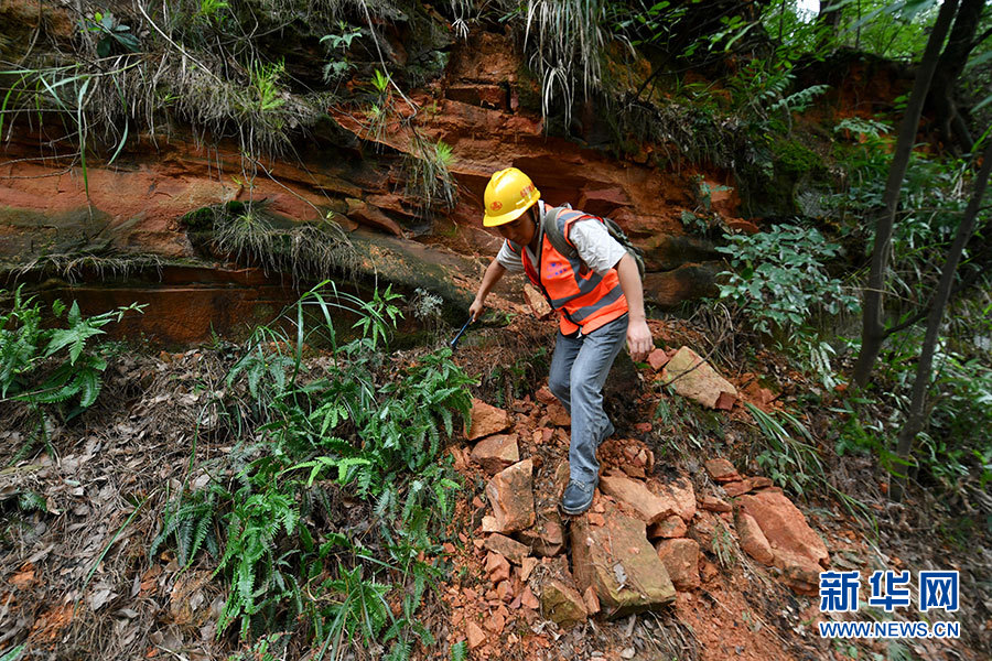 在汛期,每天地質隊員們都要奔波在轄區的各個山體處,用雙腳走出對地質情況的了然于心,也走出了一方百姓的平安。新華網發(郭旭 攝)