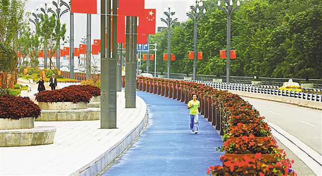 10月11日,江北區北濱路石門大橋至吉川路段,市民在拓寬改造后的景觀帶上慢跑。