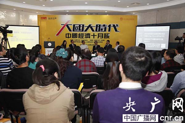 [主持人]大家好,我是中央人民廣播電臺經濟之聲的節目主持人紀春,歡迎來到《大國大時代——中國經濟十月談》系列時事報告會的現場,這個系列報告是會由中央人民廣播電臺經濟之聲央廣網主辦,共有10場,這10場報告會我們邀請20多位知名專家學者,緊扣中國經濟脈搏,研討當前經濟領域的升級、增長、價格、貨幣、農業、地產等各方面的問題。