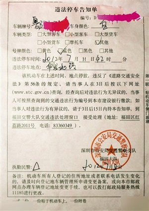 最近一張深圳交警開的罰單的照片在網絡上廣為流傳。這張違法停車的告知單顯示,違法停車的時間為2012年7月11日42時,但是底部落款時間則是2012年7月8日。更夸張的是,左下角簽名欄里并不是執勤交警的簽名,而是一個“△”的符號。對此,深圳市交警局相關負責人回應稱,時間寫錯應該只是“筆誤”,至于為何簽名一欄會出現“△”的符號,當地交警大隊仍在進行核實。