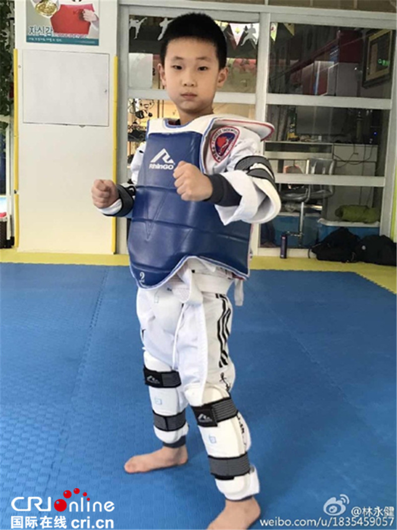 林永健曬兒子學(xué)跆拳道照 大竣裝備齊全有模有樣