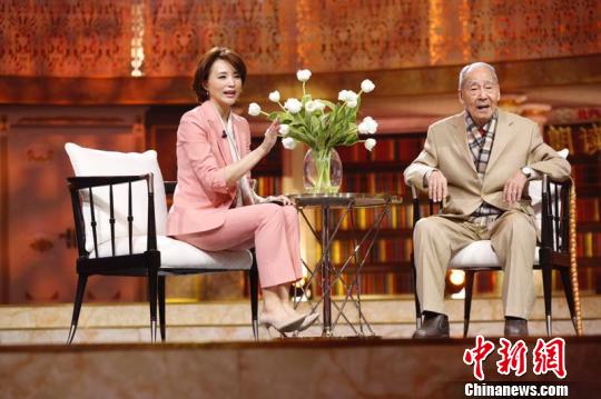 《朗讀者》錄制現(xiàn)場(chǎng)董卿采訪翻譯家許淵沖。