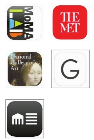 國外美術(shù)館的移動客戶端標(biāo)識,依次為:紐約現(xiàn)代藝術(shù)博物館、紐約大都會藝術(shù)博物館、華盛頓國家畫廊、紐約古根海姆博物館、克利夫蘭藝術(shù)博物館。資料圖片
