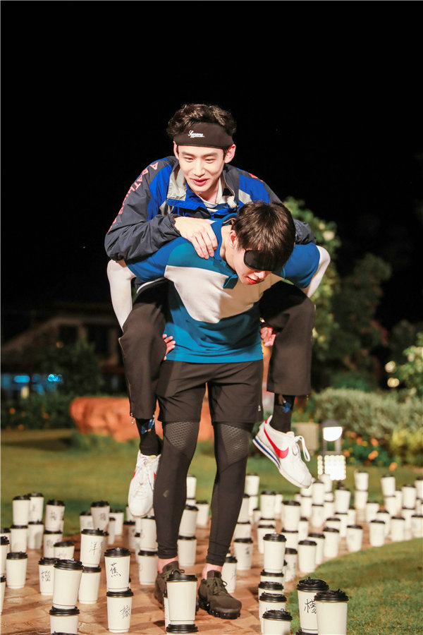 在終極大戰中,為了獲取有力線索,白敬亭、魏大勛搭檔挑戰“紙杯陣”。魏大勛蒙上雙眼,背著白敬亭走過由紙杯擺成的迷宮,一旦踢倒紙杯,就要吃掉相應的食物:不僅有美味的東南亞水果,還有洋蔥、榴蓮等重口味食物來襲!二人上演“勛花移山”,白敬亭吐槽好兄弟:“你可不可以別把我背太高了!”移動過程中,白敬亭耐心指導魏大勛移動,實力演繹“你是我的眼”,“山花組合”默契十足!