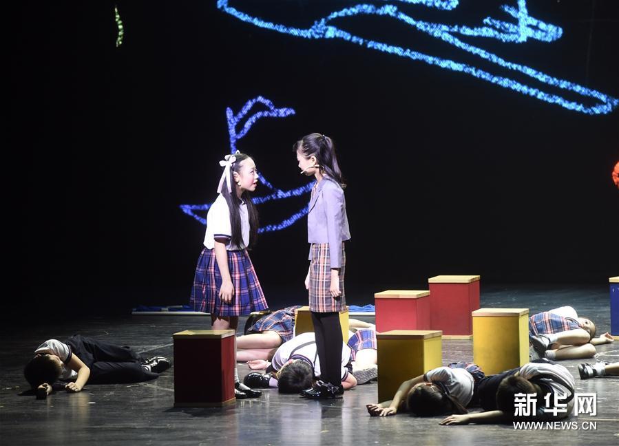 3月13日,學生在表演原創音樂劇《愛的煩惱》。當日,北京燈市口小學優質教育資源帶原創音樂劇《愛的煩惱》在中國兒童藝術劇院上演。這一臺原創音樂劇圍繞社會熱點“二胎”的話題展開。據介紹,這是燈市口小學優質教育資源帶首次舉辦原創劇目的專場演出,故事靈感來源于學生,由專業人士主導,學生和老師共同參與創作。新華社記者 羅曉光 攝